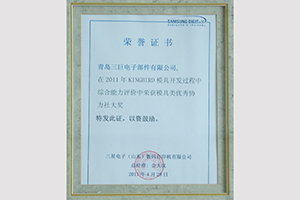 青島三巨電子部件有限公司在三星電子(山東)數(shù)碼打印機(jī)有限公司舉辦的KINGBIRD模具開(kāi)發(fā)過(guò)程中綜合能力評(píng)價(jià)獲得模具類優(yōu)秀協(xié)力社大獎(jiǎng);